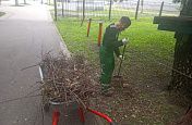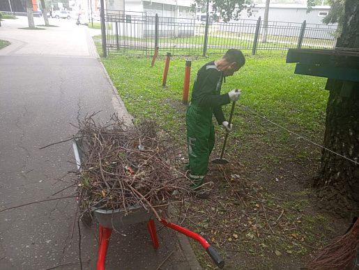 - уборка территории от сухих веток, поломанных веток во время сильных ветров;