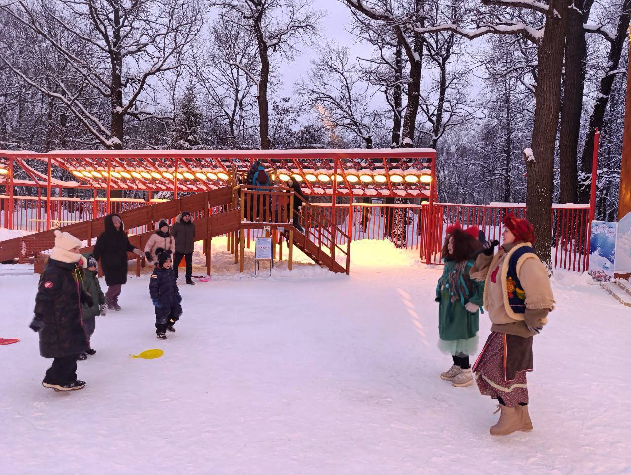 То, что сегодня творилось у нашей елочки в парке Белинского, не снилось ни в одной сказке! На дискотеку пожаловали особые гости — две давние подружки: Кикимора и Баба-Яга!