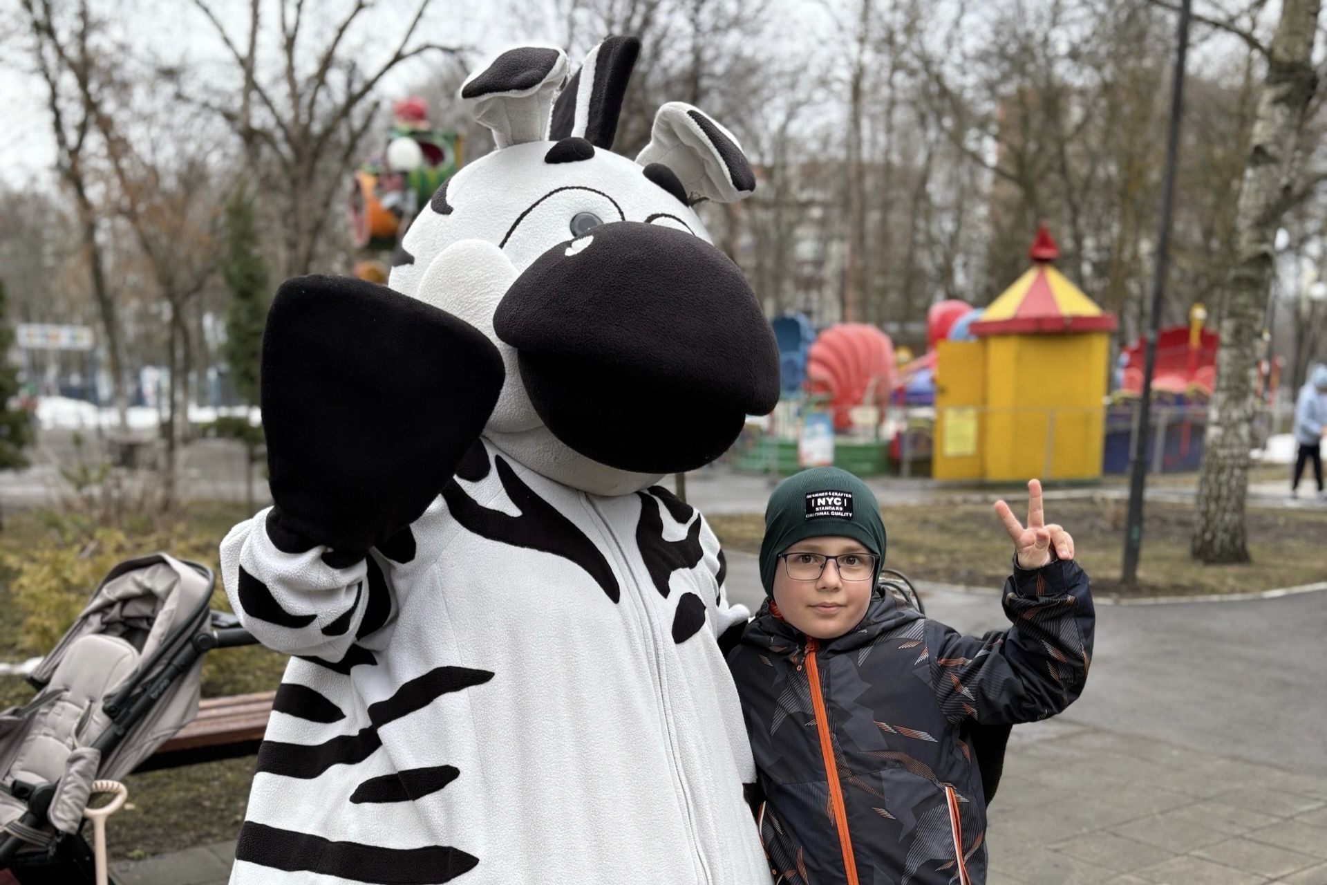 Сегодня, 3 апреля, Детский парк превратился в настоящую фотостудию под открытым небом, где главным героем стал обаятельный персонаж - зебра Мартин.