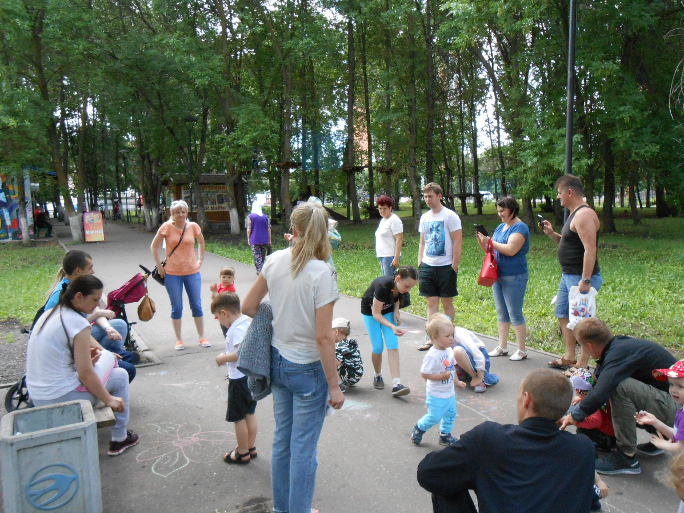 Первый подарок отдыхающие преподнесли парку. Им стал «распустившийся на асфальте» букет с цветами. Сюрприз для гостей от Скоморошки заключался в том, что она научила в игре использовать коленочки для развития внимания и весело проводить сончас. Неожиданно появившееся Радужное солнышко предоставило возможность всем желающим поиграть со своими лучиками. С помощью звукооператор посетители парка сделали неожиданное открытие о том, что «у соседа всё лучше» в музыкальной игре «Лавата».