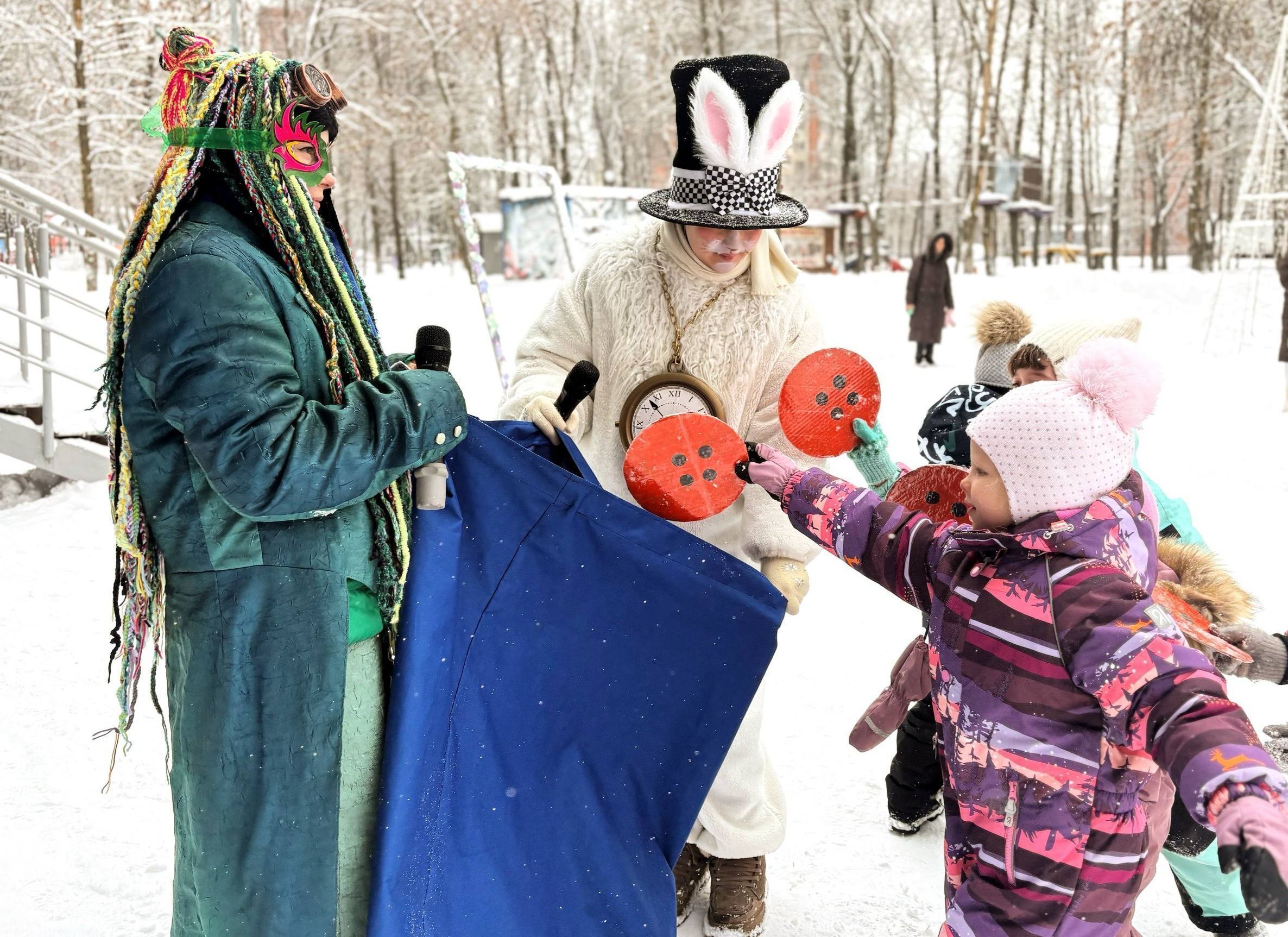 Сегодня, 5 января, гости Детского парка окунулись в мир удивительных приключений вместе с Алисой и её другом Белым Кроликом .