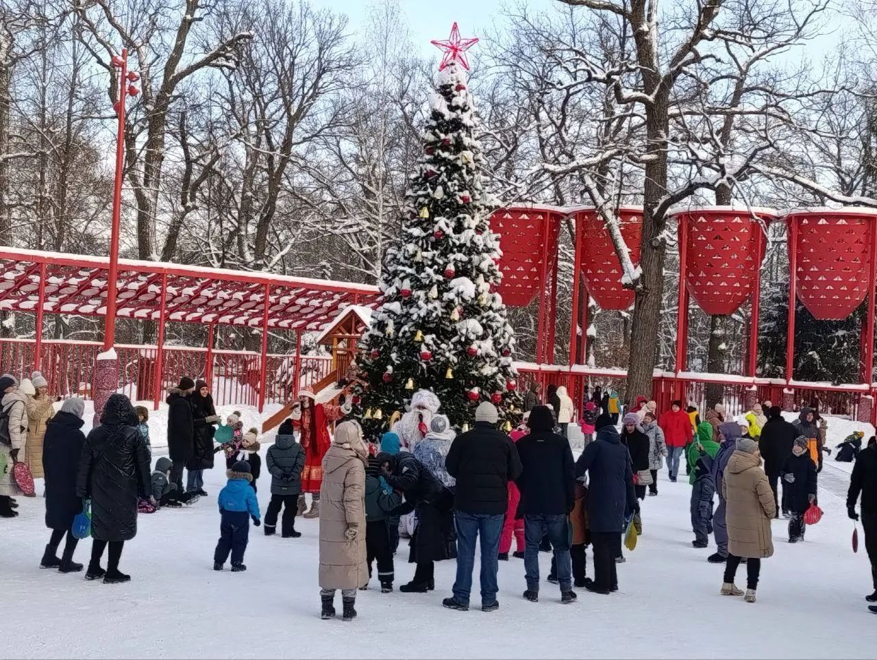 В 12:00 на танцплощадке парка Белинского мы вместе отправились в удивительное новогоднее приключение — «Космический экипаж Деда Мороза. Миссия: Новый год».