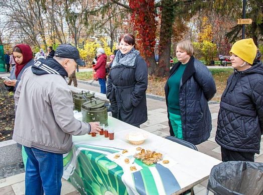 Организаторы мероприятия постарались на славу! Работала ярмарка изделий декоративно-прикладного творчества от "Клуба народных умельцев", все желающие могли принять участие в мастер-классе по изготовлению волшебных роз из кленовых листьев, сфотографироваться на память с очаровательным Мишкой в необычной фотозоне "Папская баня" или угоститься горячим чаем с печеньем.