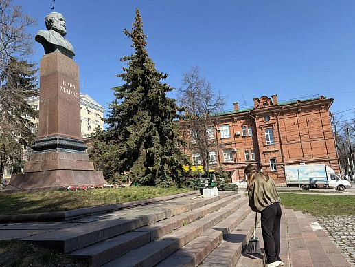 16 апреля, в преддверии Дня памятников и исторических мест и в рамках месячника по благоустройству, сотрудники парка Белинского приводили в порядок памятник Карлу Марксу.