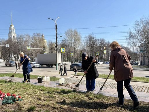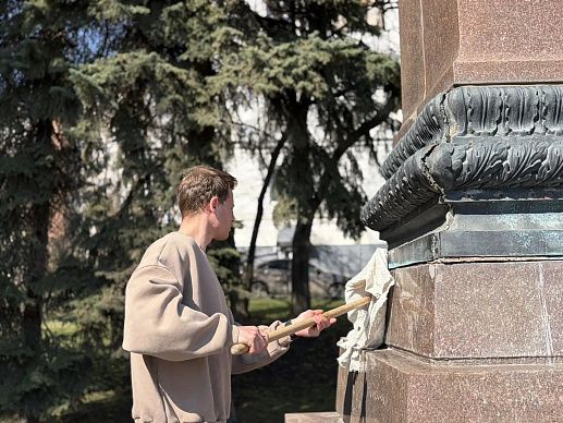 Убрали мусор, сломанные ветки и прошлогоднюю листву, подмели ступени, вымыли постамент памятника.