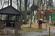 Сотрудники парков дружно вышли на уборку аллей, газонов, территории Парка динозавров.