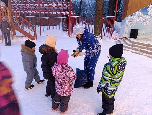 Под ритмичную музыку все пустились в пляс: и дети, и взрослые. Снеговичок играл, шутил и заряжал всех отличным настроением! Даже морозцу стало теплее от такого веселья.
