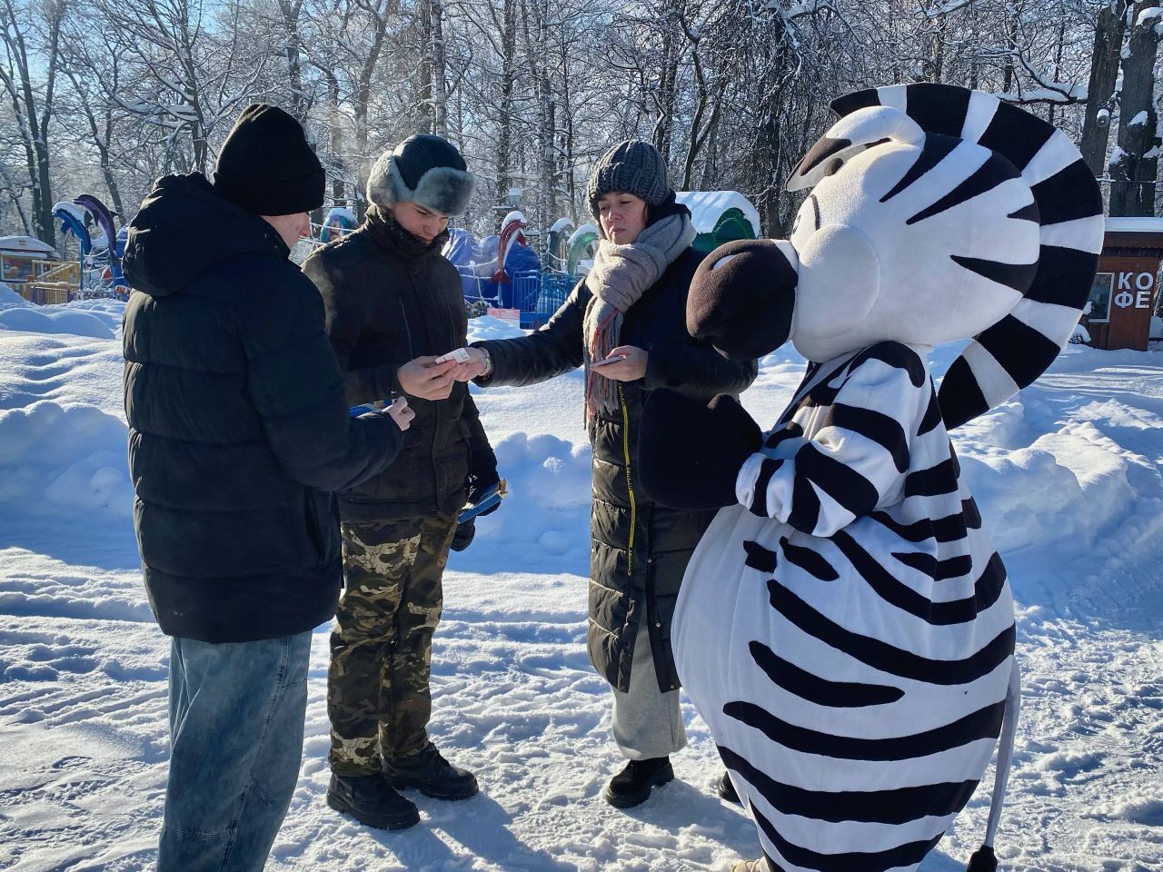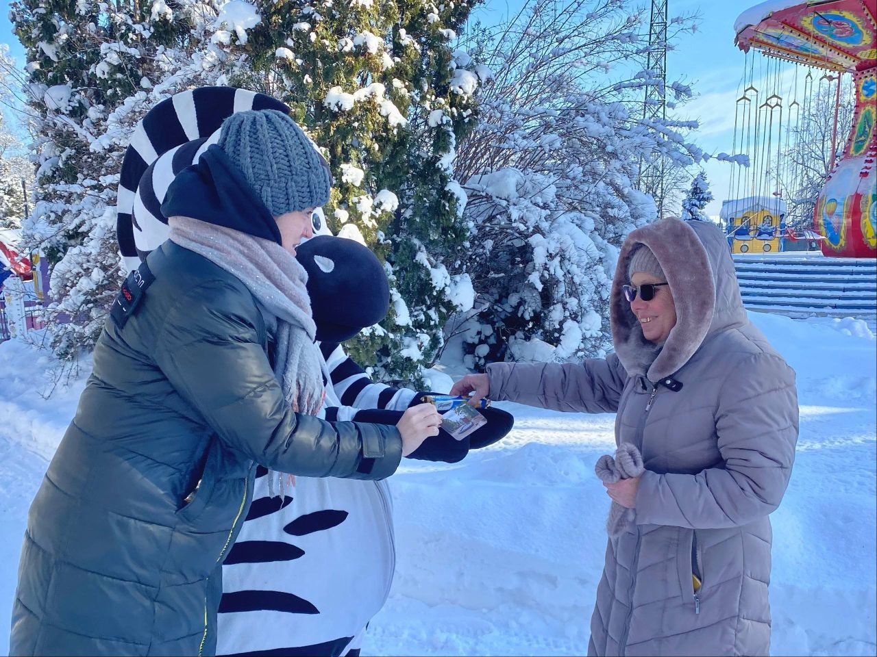 В честь этого яркого события она решила прогуляться и поздравить всех гостей парка Белинского! Для каждого посетителя были приготовлены милые подарки — календарики с изображением парка и вкусное печенье от Комбината кондитерских изделий «Агеевский».