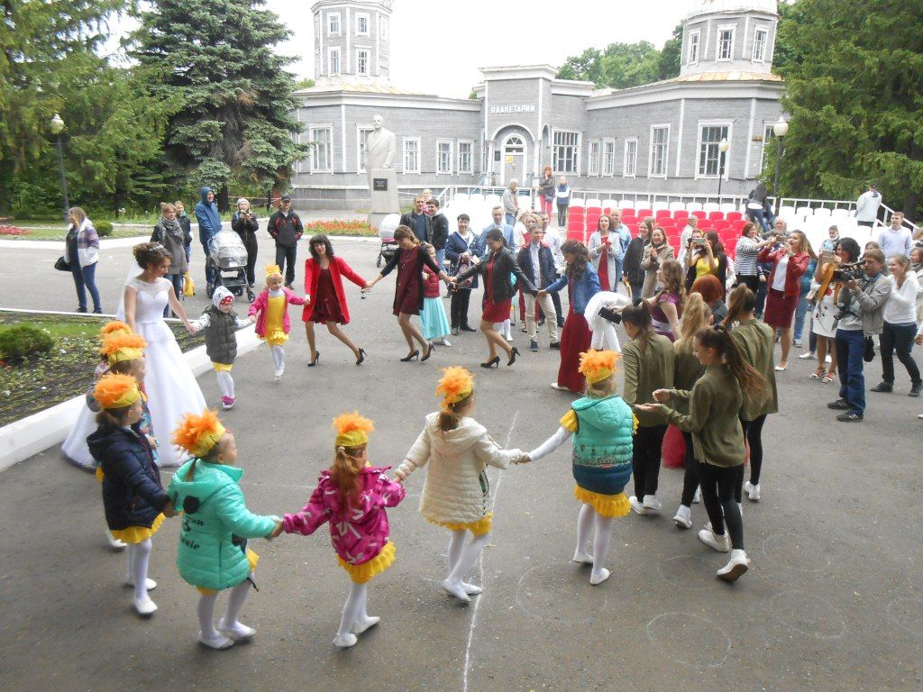 Кроме того, всем известно, что парк является излюбленным местом фотоссесий молодоженов и сегодня свадебные кортежи останавливались и поддерживали детей. На площадке видовой аллеи прошёл массовый флэш-моб команды жениха и невесты, а после все зрители поздравили их с рождением новой семьи!