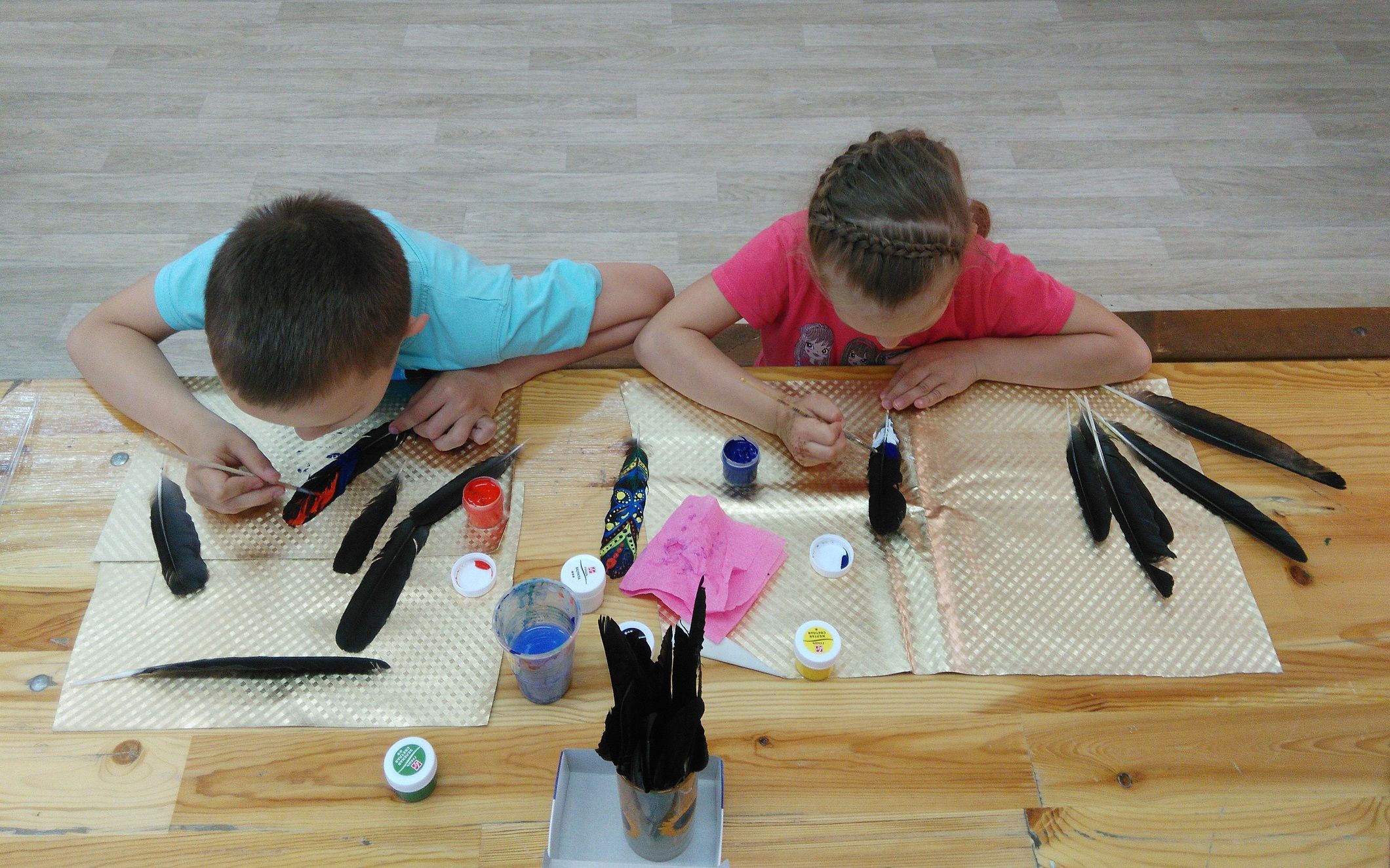 8 июля в 11:00 в Детском парке состоялся мастер-класс по росписи перьев. Студия семейного творчества «Конфетти» приглашала гостей освоить технику росписи акриловыми красками. Взрослые и дети выбирали перья и украшали их разноцветными узорами в этническом стиле. Ребята так увлеклись мастер-классом, что расписали даже несколько перьев каждый.
