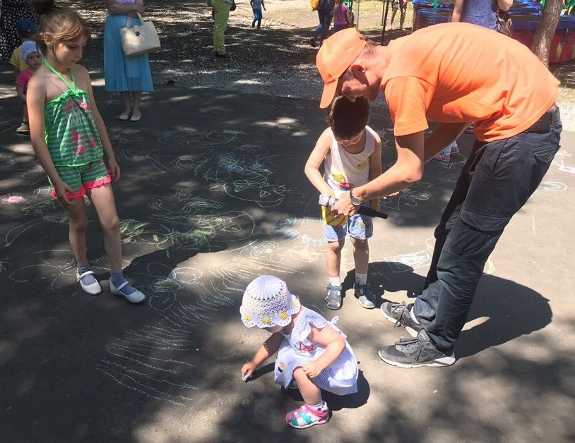 22 июня в 11.00 в Детском парке состоялся конкурс рисунков на асфальте «Мы рисуем мир». Ведущий загадывал загадки о природе, ребята нарисовали отгадки мелом на асфальте. А потом каждый смог нарисовать любимое животное и придумать ему имя.
