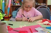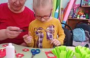 Участники, включая детей и их родителей, приняли участие в мастер-классе по изготовлению подарков для мам под названием "Единственной маме на свете".