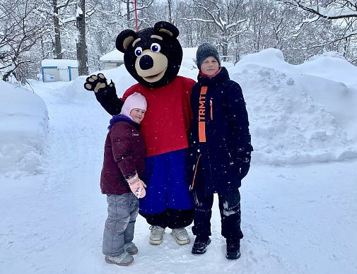 Мишка с радостью позировал для фото, даря каждому ребёнку искренние теплые объятия. Этот день был наполнен улыбками, радостью и настоящей зимней магией.