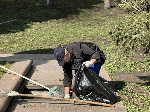 Убрали мусор, сломанные ветки и прошлогоднюю листву, подмели ступени, вымыли постамент памятника.