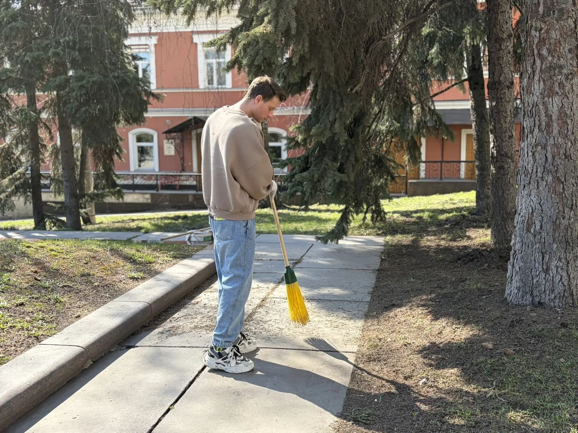Убрали мусор, сломанные ветки и прошлогоднюю листву, подмели ступени, вымыли постамент памятника.