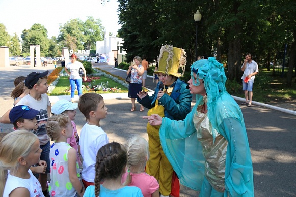 Сегодняшняя театрализованная сказка была посвящена морским путешествиям. Дети и взрослые в дружной команде с Золотой рыбкой побывали в гостях у Кикиморы, Водяного и Царицы морей. Дружба, сплоченность и взаимовыручка помогли юным мореходам справиться со всеми трудностями найти и собрать карту, которую потерял старый Пират. Музыкальную атмосферу путешествия поддерживала солистка вокально-эстрадной студии «Маэстро» Дроздова Ксения.