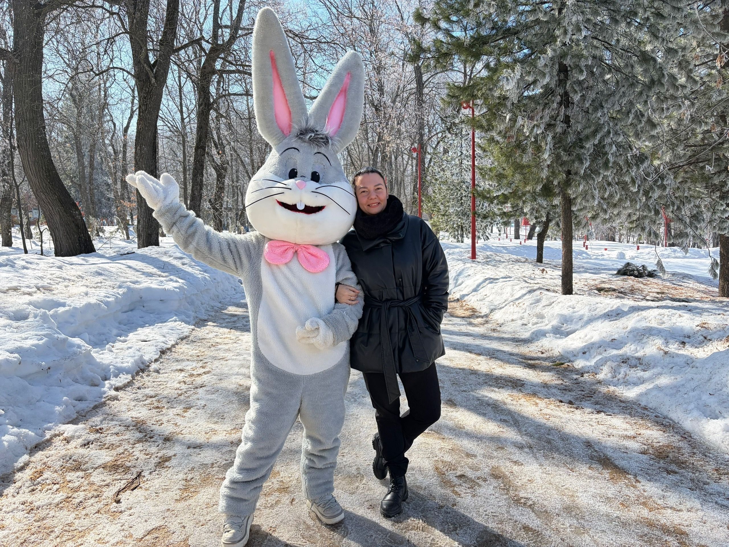 И дети, и взрослые были очень рады встрече с ним — улыбки и смех звучали повсюду. Люди охотно обнимали Зайку, даря ему свою любовь и радость, а он в ответ щедро делился своим теплом и хорошим настроением.