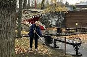 Сотрудники парков дружно вышли на уборку аллей, газонов, территории Парка динозавров.