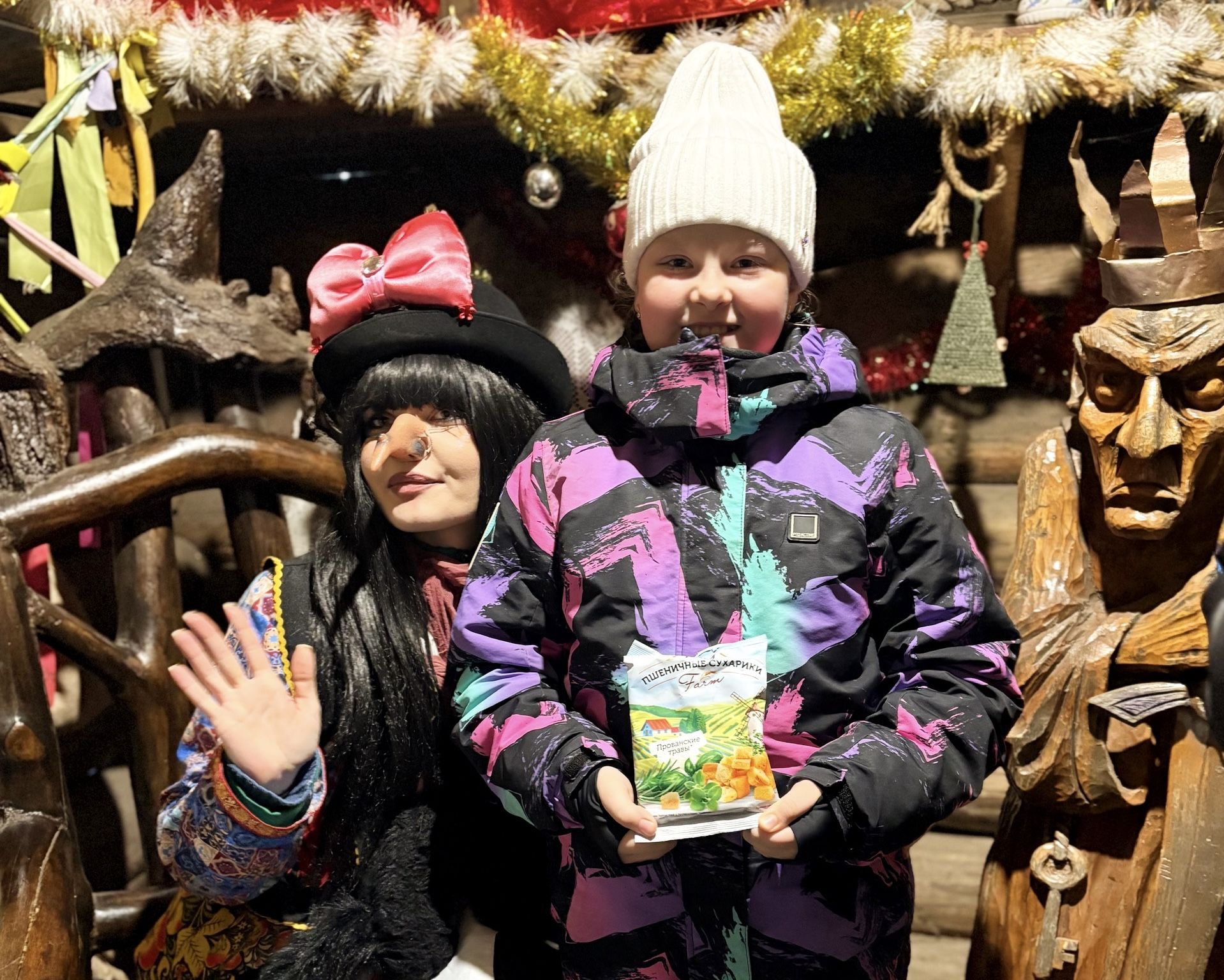 6 января, в самый канун Рождества, к нам снова заглянула всеми любимая гостья и главная волшебница парка — Бабушка Яга!