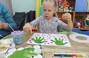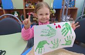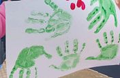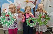 В завершение все дружно взялись за краски и, используя свои собственные ладошки, создали замечательные, душевные новогодние венки.